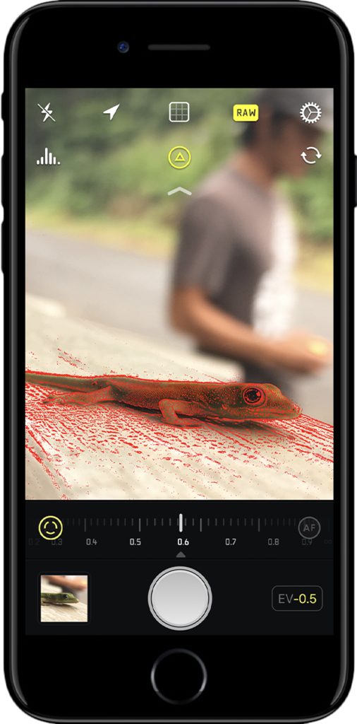 By default, Halide shoots in a smart automatic mode, but one tap toggles manual. Dive into the details like ISO, shutter speed, and white balance. Halide packs powerful tools you’d expect from professional equipment, such as focus peaking, a detailed histogram, adaptive level grid and RAW support.