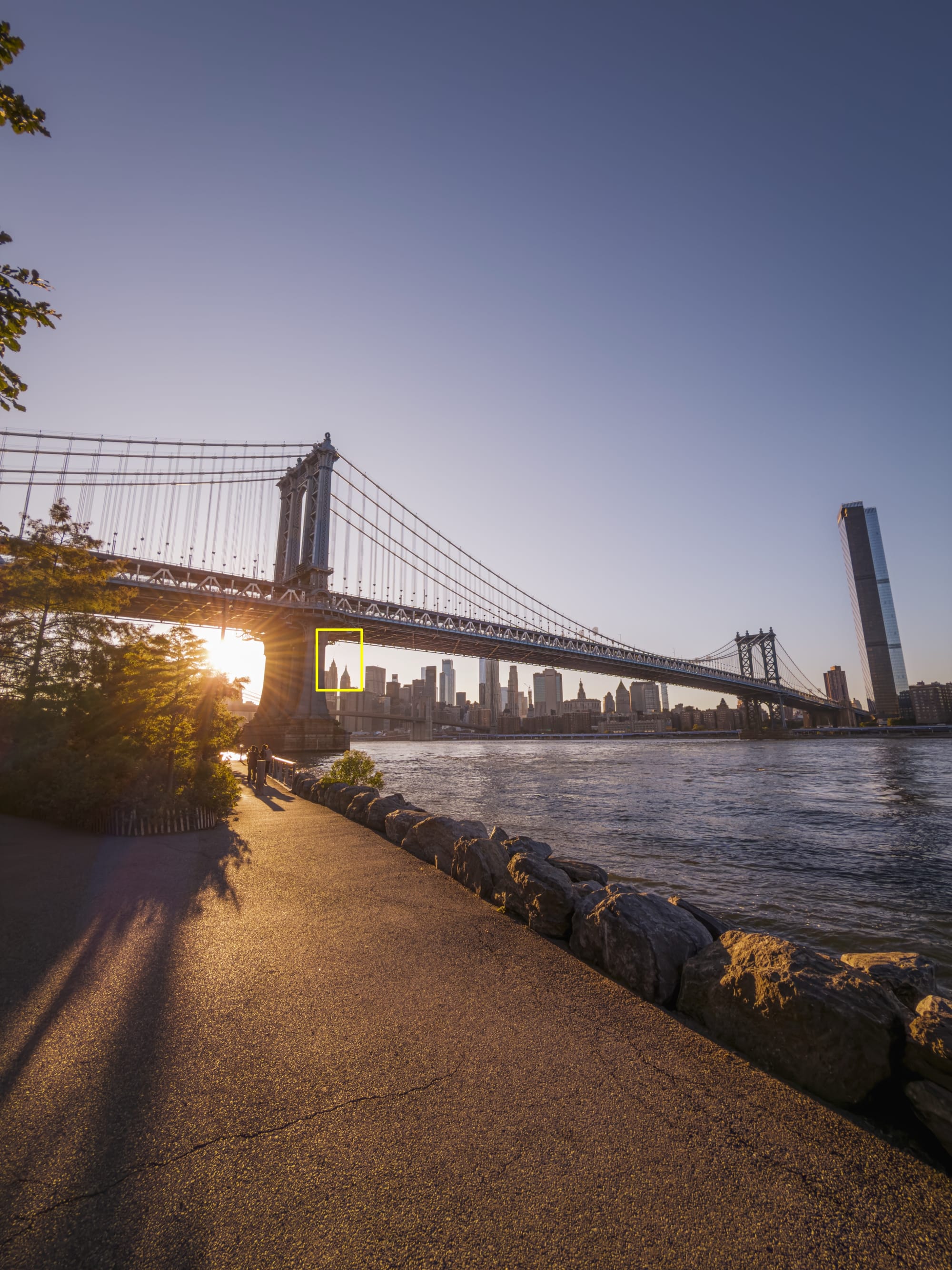 At 8×, I am presented with a choice: I can capture the tower, or the throng of people crossing the bridge and note as the evening sun lights up the dust in the air: