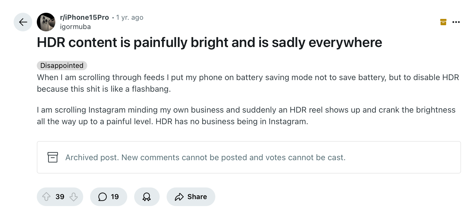If you want to see how bad HDR displays can get, look no further than online content creators. At some point these thirsty influencers realized that if you make your videos uncomfortably bright, people will pause while swiping through their Instagram reels. The abuse of brightness has lead to people disabling HDR altogether.