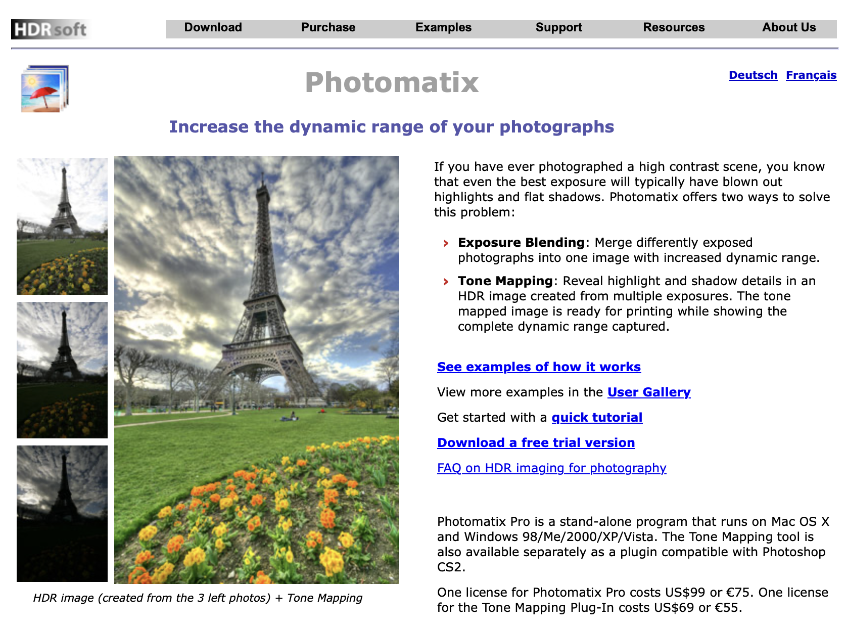 Left and Middle: a shot with simple exposure adjustments. Right: a tone-mapped version.