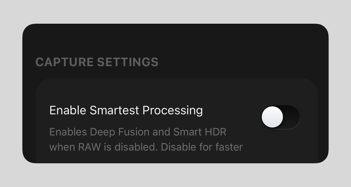 Since 2020, we've offered users the option of disabling Smart HDR and Deep Fusion, and it quickly became one of our most popular features.
